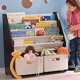 . View updated Instruction Manual . Kids bookcase accommodates books of all sizes and shapes, thanks to shelves of varying depths. Shelves (from top to bottom) are 4", 5", 5", and 7" deep. . Unlike others, our stabilized shelves won't dip or become asymmetrical, even when you load them unevenly . Includes two 12"L x 13"W x 8"H storage bins, with dual handles for easy lifting . 15-minute assembly Read more