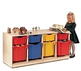 wb7004 Shown Here With Colored Trays These versatile storage solutions come complete with award-winning Gratnell storage bins that kids can easily pull out and put back. The rigid plastic stands up to years of hard use, and they roll on heavy duty casters. This unit was designed with efficency and convenience. Features: -Eight Gratnell trays -Award winning -Sturdy and child friendly -Includes jumbo and medium sized clear trays -Heavy-duty casters included -Overall Dimensions: 24'' H x 54'' W x 18''D Read more